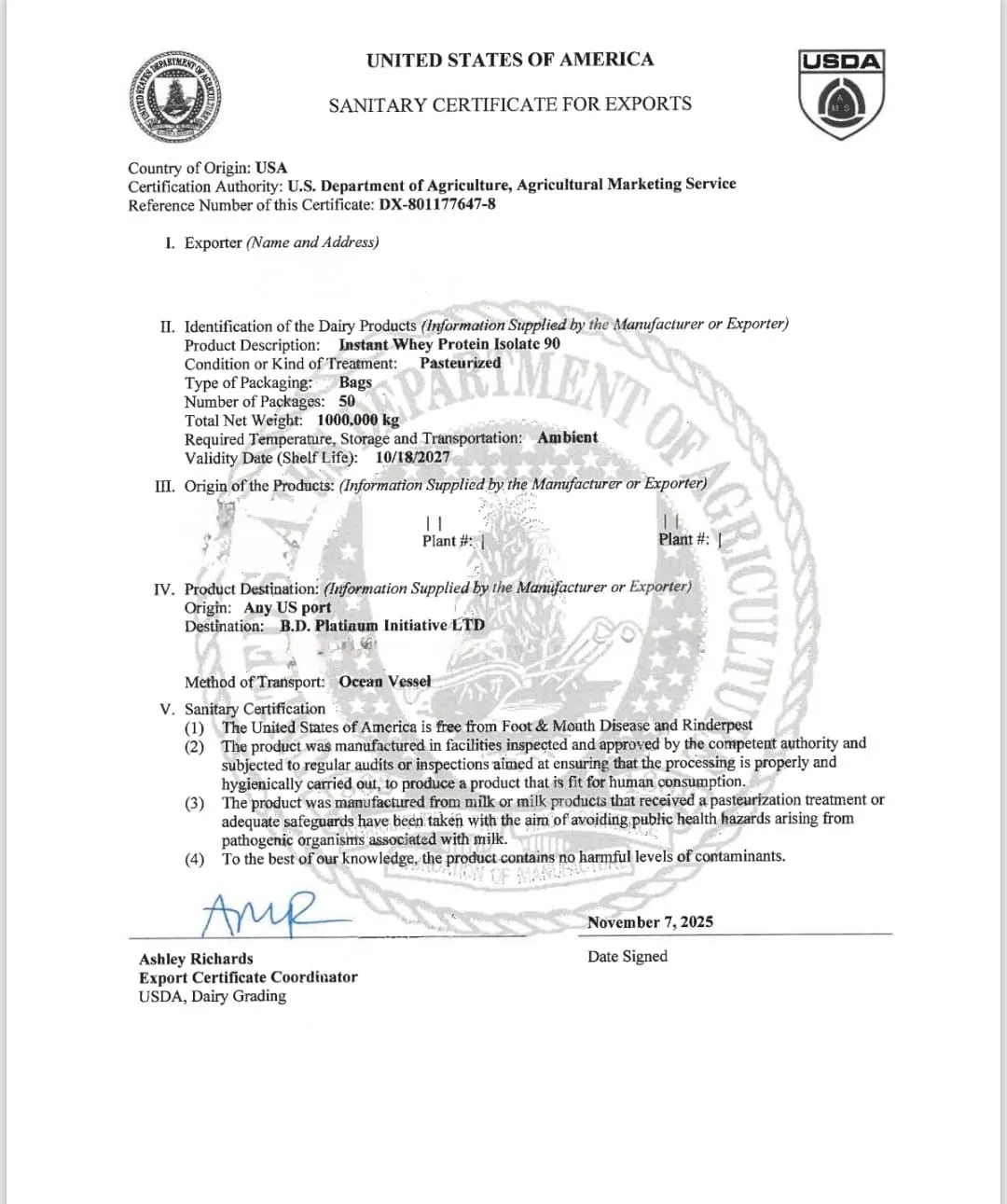 SANITARY CERTIFICATE FOR EXPORTS