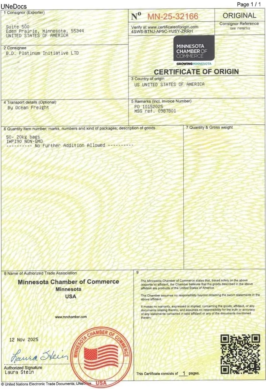 CERTIFICATE OF ORIGIN